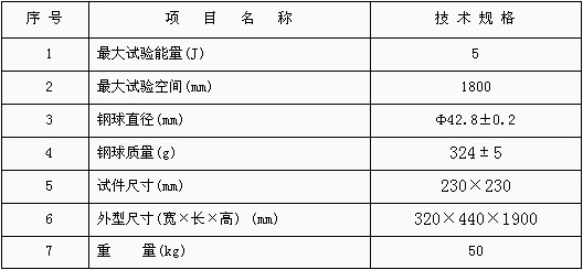 產(chǎn)品概述: MJL-5落球沖擊試驗(yàn)機(jī)是針對(duì)“人造板及飾面人造板進(jìn)行抗沖擊性能測(cè)定”研制的,能夠滿足 GB17657-1999《人造板及飾面人造板理化性能試驗(yàn)方法》,,進(jìn)行落球沖擊試驗(yàn)的各項(xiàng)要求, 是人造板各級(jí)質(zhì)檢部門(mén)和生產(chǎn)企業(yè)的理想測(cè)試設(shè)備。 技術(shù)參數(shù):
