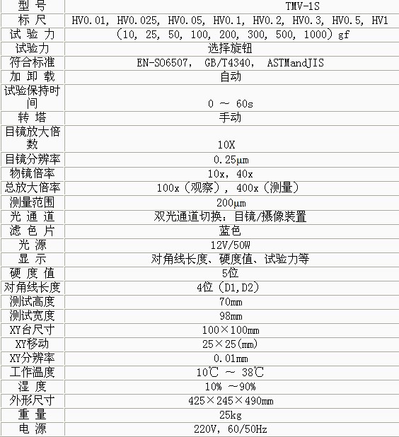 產(chǎn)品概述: TMV-1S顯微維氏硬度計(jì)在機(jī)械、光學(xué)、光源上采用獨(dú)特的精密設(shè)計(jì)使壓痕成像更清晰,測(cè)量更精確。適用于測(cè)量微小、薄形試件、表面滲鍍處理后的零 件和對(duì)瑪瑙、玻璃、陶瓷等脆性材料的顯微和努氏硬度的測(cè)定 以及涂層、表面覆層、層壓金屬、熱處理碳化層和淬火硬化層的深度與硬度梯度的測(cè)定。是科研機(jī) 構(gòu)、工廠及質(zhì)檢部門進(jìn)行研究和檢測(cè)的理想的硬度測(cè)試儀器。 功能特點(diǎn): • 在屏幕上能顯示試驗(yàn)方法、試驗(yàn)力、試驗(yàn)力保荷時(shí)間、測(cè)量次數(shù)等 • 操作時(shí)只要從薄膜鍵盤輸入壓痕對(duì)角線長(zhǎng)度,,內(nèi)置計(jì)算器自動(dòng)計(jì)算出硬度值并顯示在LCD屏上 • 擁有可供連接數(shù)碼相機(jī)和CCD攝像頭的螺紋接口,,光源上采用12V、50W鹵素?zé)魺峁庠矗?span id="hvptxrhht" class="wd3017">,像質(zhì)清晰。