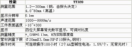 功能特點: 1、具有高溫測試功能,測量工件表面溫度可達300度; 2、設(shè)有耦合提示、低電壓提示; 3、關(guān)機方式:手動和自動關(guān)機等功能(無操作三分鐘后); 4、最小值捕捉:可選擇顯示當(dāng)前厚度值或最小厚度值 5、數(shù)據(jù)存儲:可存儲500個測量值和5個聲速值 6、聲速可調(diào):可利用已知厚度試塊測量聲速,超聲波測厚儀應(yīng)用,可以測試不同的高溫材料; 7、增益設(shè)置:具有高低增益設(shè)置功能 8、公英制轉(zhuǎn)換:可選擇mm或inch 9、背光顯示功能,適合在光線不好的環(huán)境中進行測量。