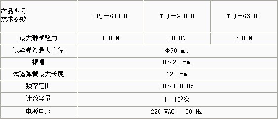 產品概述: TPJ-G系列彈簧高頻疲勞試驗機采用電磁激勵、試件(彈簧)共振原理,彈簧試驗標準,系統自動處于最佳諧振狀態(tài),勿需調整,日本aikoh彈簧試驗機,起動一觸即發(fā),性能穩(wěn)定可靠。操作簡單,彈簧疲勞試驗機,操作人員勿需培訓。 功能特點: 試驗機設有振動次數及頻率的數字顯示及次數預置、記憶等功能。該機既可以做單對彈簧的試驗,也可做多對彈簧的試驗機。 技術參數: