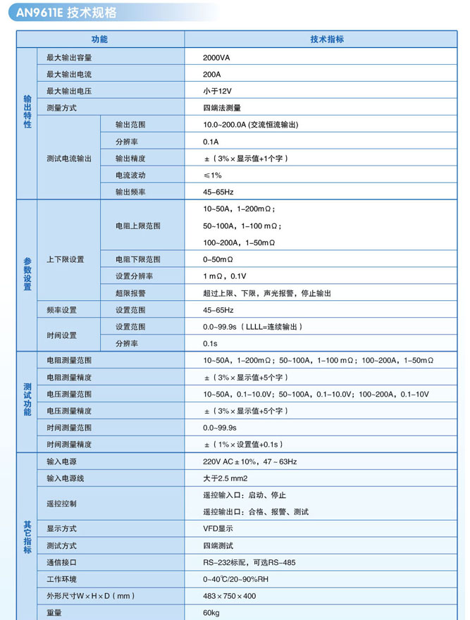 濟(jì)南200A接地導(dǎo)通電阻測(cè)試儀-AN9611E-艾諾