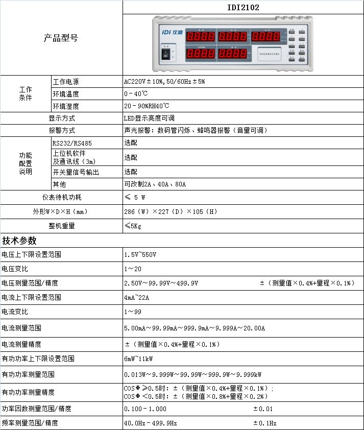 •電壓、電流、功率上下限設置和超限聲光報警功能;