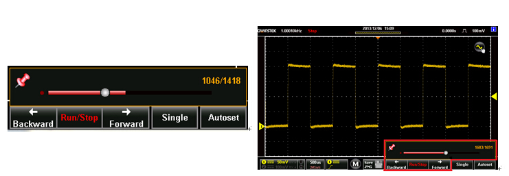 GDS-300/GDS-200系列示波器內(nèi)建30,000筆波形記錄以及回放功能。工程師能夠使用此功能進(jìn)行長(zhǎng)時(shí)間的電路監(jiān)控,當(dāng)30,000筆波形量測(cè)完成時(shí),還能重復(fù)播放過(guò)去的記錄,當(dāng)電路中若發(fā)生間歇性的異常波時(shí),便可利用回放功能找到問(wèn)題發(fā)生之所在,提供使用者一個(gè)強(qiáng)大的搜尋以及除錯(cuò)利器。