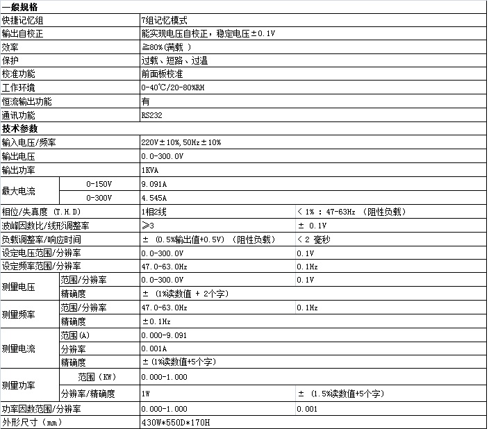 2. 全范圍可調(diào)輸出電壓及頻率設(shè)定范圍(0 - 300V,,47 -63HZ);