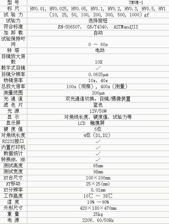 產(chǎn)品概述: • TMVM-1觸摸屏顯微維氏硬度計(jì)硬度計(jì)儀器在機(jī)械上采用精密的設(shè)計(jì),威海維氏硬度計(jì),在電氣上由CPU控制試驗(yàn)過程,顯微維氏硬度計(jì),在光學(xué)上采用高清晰光學(xué)測(cè)量系統(tǒng)、光電傳感等新技術(shù)。 • 適用于測(cè)量微小、薄形試件、表面滲鍍處理后的零件和對(duì)瑪瑙、玻璃、陶瓷等脆性材料的顯微和努氏硬度的測(cè)定 以及涂層、表面覆層、層壓金屬、熱處理碳化層和淬火硬化層的深度與硬度梯度的測(cè)定。是科研機(jī)構(gòu)、工廠及質(zhì)檢部門進(jìn)行研究和檢測(cè)的理想的硬度測(cè)試儀器。 功能特點(diǎn): • 操作由面板上的觸摸鍵輸入,維氏硬度計(jì)算,能預(yù)置試驗(yàn)力保荷時(shí)間、選擇維氏或努氏試驗(yàn)方法、調(diào)節(jié)測(cè)量光源的強(qiáng)弱等功能。 • 在LCD液屏上顯示測(cè)量壓痕長(zhǎng)度、硬度值、測(cè)量次數(shù)、轉(zhuǎn)換值等,維氏硬度計(jì) TIME,并通過打印機(jī)輸出,dhv 1000維氏硬度計(jì),還能通過RS232接口與計(jì)算機(jī)連網(wǎng)。 • 硬度計(jì)還可根據(jù)用戶特殊需求配置CCD裝置、視屏裝置和攝像裝置 技術(shù)參數(shù):