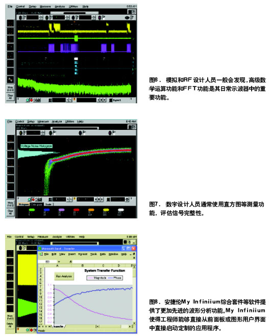 對(duì)關(guān)注波形分析的“高需求用戶”示波器制造商正在中檔示波器和高檔示波器中提供更大的靈活性。某些制造商提供的軟件允許定制復(fù)雜的測(cè)量直接從示波器用戶界面中執(zhí)行數(shù)學(xué)函數(shù)和后期處理。例如可以使用C++或Visual Basic編寫(xiě)測(cè)量程序然后從示波器圖形用戶界面(GUI)中執(zhí)行程序。用過(guò)這一功能用戶不需把數(shù)據(jù)傳送到外部PC上對(duì)關(guān)注波形分析的用戶這可以節(jié)約大量的時(shí)間。