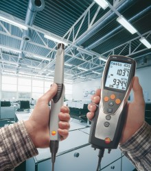 用于管道測量的流速傳感器都帶有伸縮桿,,便于在大型空氣管道中進行操作。如果需要,還可以使用測量流速的探頭來測量溫度和濕度?梢愿鶕(jù)應(yīng)用需求選擇熱敏探頭、葉輪探頭或皮托管來測量管道中的流速。 測量室內(nèi)空氣質(zhì)量(二氧化碳)![]() 高濃度的二氧化碳會導(dǎo)致室內(nèi)空氣質(zhì)量變差,從而使人體感覺疲倦,無法集中精神,甚至生病。因此,為了保證良好的室內(nèi)空氣質(zhì)量,二氧化碳濃度一般不應(yīng)超過1 000 ppm。參考范圍為700到1500 ppm。 IAQ探頭(訂貨號0632 1535)尤為適合監(jiān)控室內(nèi)空氣質(zhì)量。此探頭可以同時記錄二氧化碳濃度、溫度和相對濕度。 在通風(fēng)管道內(nèi)使用皮托管進行測量為了確保通風(fēng)和空調(diào)系統(tǒng)的正常功能,對通風(fēng)管道內(nèi)的空氣流速進行檢測是非常重要的。 testo 435-3的內(nèi)部壓差傳感器用來測量高流速或高污染的氣流,皮托管測量范圍從0到64米/秒的空氣流速。testo 435-3可以同時顯示壓力、流速和體積流量。 在儀器背后的磁貼可以實現(xiàn)免提操作。 過濾器上壓差測量![]() 空調(diào)系統(tǒng)配有過濾器,可以防止室外空氣中的灰塵進入室內(nèi)。應(yīng)定期檢查這些過濾器,以確保它們運行良好。為此,,需要測量過濾器前后的壓力差。如果壓差過大,說明過濾器被污染,需要更換。 testo 435-3內(nèi)置壓差傳感器,測量范圍0到25 hPa。在壓差測量過程中會進行溫度補償,以得到精確讀數(shù)。在儀器背后的磁貼可以實現(xiàn)免提操作。 熱輻射的測量![]() 多功能測量儀testo 435能夠幫助您可靠地測量熱舒適度。連接一個熱輻射黑球探頭(訂貨號0602 0743),測量輻射熱量(也就是有效或感知溫度)。熱輻射黑球探頭測量的有效溫度與人體感知溫度的差值最好不超過± 0.41 K。 室內(nèi)溫度(空氣溫度和有效溫度)的測量要采取在同一個地方,相同的條件,如室內(nèi)空氣流速的一致的情況下進行。 測量空氣和表面溫度為了讓人體感覺舒適,達到最佳狀態(tài),房間內(nèi)必須調(diào)節(jié)空調(diào)運行工況。除了建筑結(jié)構(gòu)因素和個體感覺,以下因素也會在很大程度上影響室內(nèi)空氣的舒適度:室內(nèi)空氣溫度以及墻壁、窗戶、底板和天花板的表面溫度。 testo 435提供滿足不同應(yīng)用的熱電偶探頭。表面探頭(訂貨號0602 0393)和空氣濕度探頭(訂貨號0636 1712)很適合分析結(jié)露問題和霉變的情況。 出風(fēng)口風(fēng)速測量![]() 為了確保系統(tǒng)的高效使用,每個管道的進出口體積流量都應(yīng)符合要求,,這是一個基本的前提條件。 在出風(fēng)口處,,適合采用直徑100mm的葉輪風(fēng)速探頭來測量體積流量(訂貨號0635 9435),因為它們可以對較大面積的流速進行綜合測量,從而排除通風(fēng)格柵所產(chǎn)生的干擾(回路方法)。 在空氣格柵和提升閥的抽風(fēng)口或出風(fēng)口進行測量時,適合采用我們的風(fēng)量罩套裝(訂貨號0563 4170)以及直徑100mm葉輪風(fēng)速探頭(訂貨號0635 9435)。通過風(fēng)量罩來記錄整體體積流量值,不需要根據(jù)流速和面積進行計算。這種流量測量方法簡單、可靠。 一氧化碳測量![]() 一氧化碳(CO)是一種無味、無色、無刺激性的氣體,但是有毒。它是在熱源和燃機內(nèi)的煤、木頭、油、天然氣等含碳物質(zhì)燃燒不充分情況下產(chǎn)生的。一氧化碳濃度增加速度很快,尤其是在沒有足夠氧氣的情況下,并可能對健康產(chǎn)生不良影響。 即使環(huán)境空氣中含有微量的一氧化碳,環(huán)境一氧化碳探頭(訂貨號0632 1235)和testo 435-1也能夠檢測到。