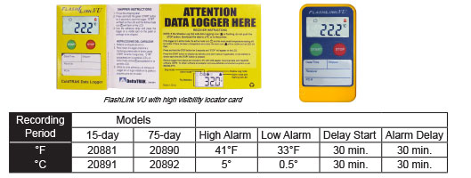 FlashLink VU 果蔬記錄儀 是專門設(shè)計用來記錄農(nóng)產(chǎn)品的貯存和運輸溫度。記錄儀具有高/低報警設(shè)置預(yù)編程(41°F/33°F)?蛻暨\輸農(nóng)產(chǎn)品可以使用這款一次性數(shù)據(jù)記錄儀。 它有一個大而易閱讀的液晶顯示屏,噴墨式溫度記錄儀,能夠提供即時的溫度信息和統(tǒng)計數(shù)據(jù),溫度記錄儀國儀棒圖,包括行程中的溫度上下極限、溫度超標(biāo)的累積時間、最高溫度、最低溫度和平均溫度。即 使是使用者不啟動數(shù)據(jù)記錄儀,數(shù)字溫度記錄儀,其專利的影子記錄功能也能保證歷史溫度數(shù)據(jù)的獲取。 應(yīng)用:記錄溫度敏感的產(chǎn)品儲存和運輸條件的理想設(shè)備。