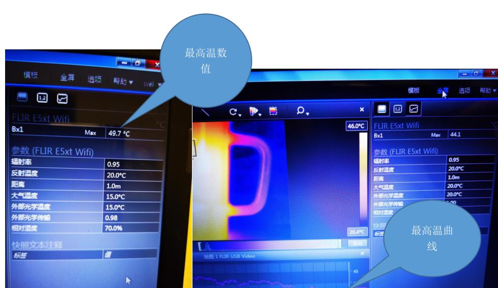 高溫度曲線。同時(shí)在右側(cè)數(shù)據(jù)區(qū)會(huì)看到實(shí)時(shí)的區(qū)域最高溫?cái)?shù)據(jù)。